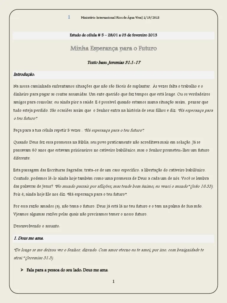Este estudo auxilia o plano de leitura bíblica que os membros da iepc estão realizando em 2020. Áudio de estudo escrito sobre jeremias 5. Deus tem me abençoado mais do que mereço. Em jeremias 5, o senhor deus continua fazendo sua denúncia contra o povo. 6 de maio de 2014, 0:00 filed under: Ele aponta a grande rebeldia deles … Ele me deu uma boa saúde, pais e amigos queridos e até mesmo posses materiais.